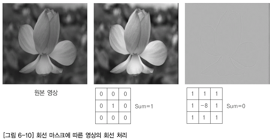 - 경계선 검출 등에서 사용되는 일부 회선 마스크에서는 음수의 계수를 포함하며, 계수 합이 0이 되도록 설계