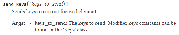 send_keys는 현재 browser 초점이 맞춰진 요소에 대해 키값을 보냅니다.